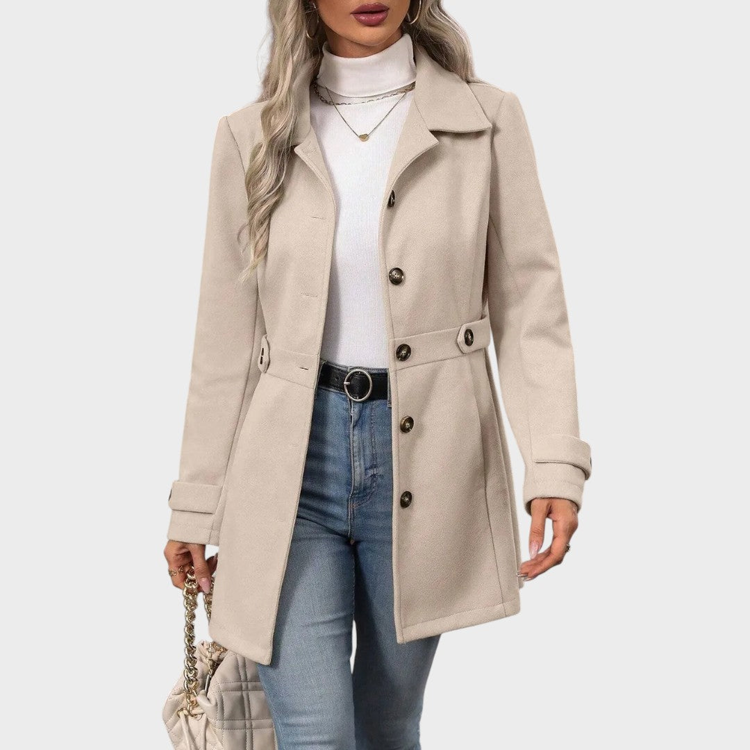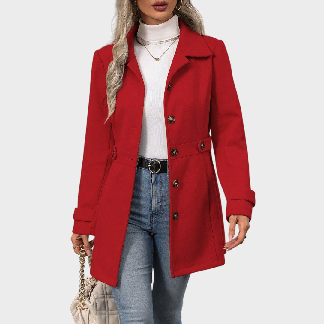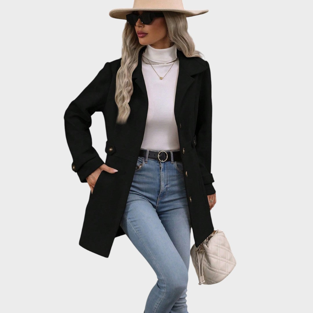 Este elegante abrigo combina la elegancia clásica con el minimalismo moderno. Su corte en forma de X realza la silueta, realzando la figura natural a la vez que mantiene un perfil sofisticado y elegante. El corte entallado proporciona un look refinado, complementado con mangas largas que abrigan en los días más fríos. Su estampado sencillo y minimalista facilita su uso, convirtiéndolo en una prenda versátil tanto para looks casuales como formales. Con un cierre de un solo botón para un toque sofisticado, este abrigo es la combinación perfecta de comodidad, clase y lujo discreto, todo ello sin forro interior para un uso ligero.