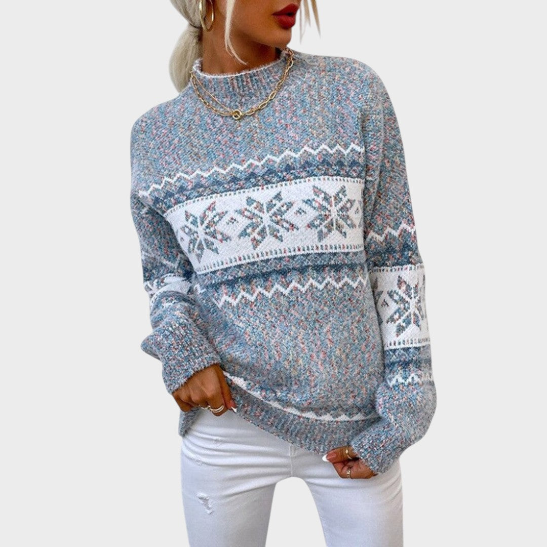 Envuélvete en una elegancia atemporal con este suéter bellamente elaborado, adornado con un delicado motivo de copo de nieve que exuda sofisticación invernal. Hecho de un tejido de punto ultra suave y de alta calidad, combina un calor lujoso con un encanto sin esfuerzo. El corte relajado asegura comodidad durante todo el día, lo que lo convierte en una elección perfecta tanto para días relajados como para celebraciones de temporada.