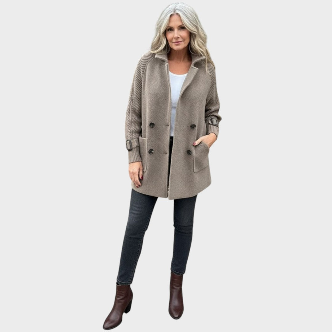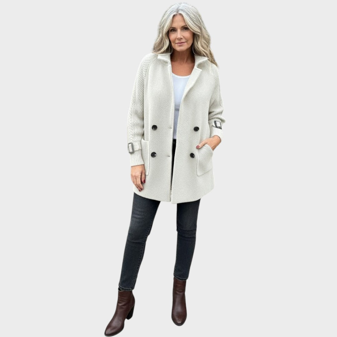 Abraza la sofisticación sin esfuerzo con el abrigo midi de doble botonadura Margarita — cuidadosamente diseñado para mujeres que valoran la elegancia atemporal y la comodidad en su día a día.