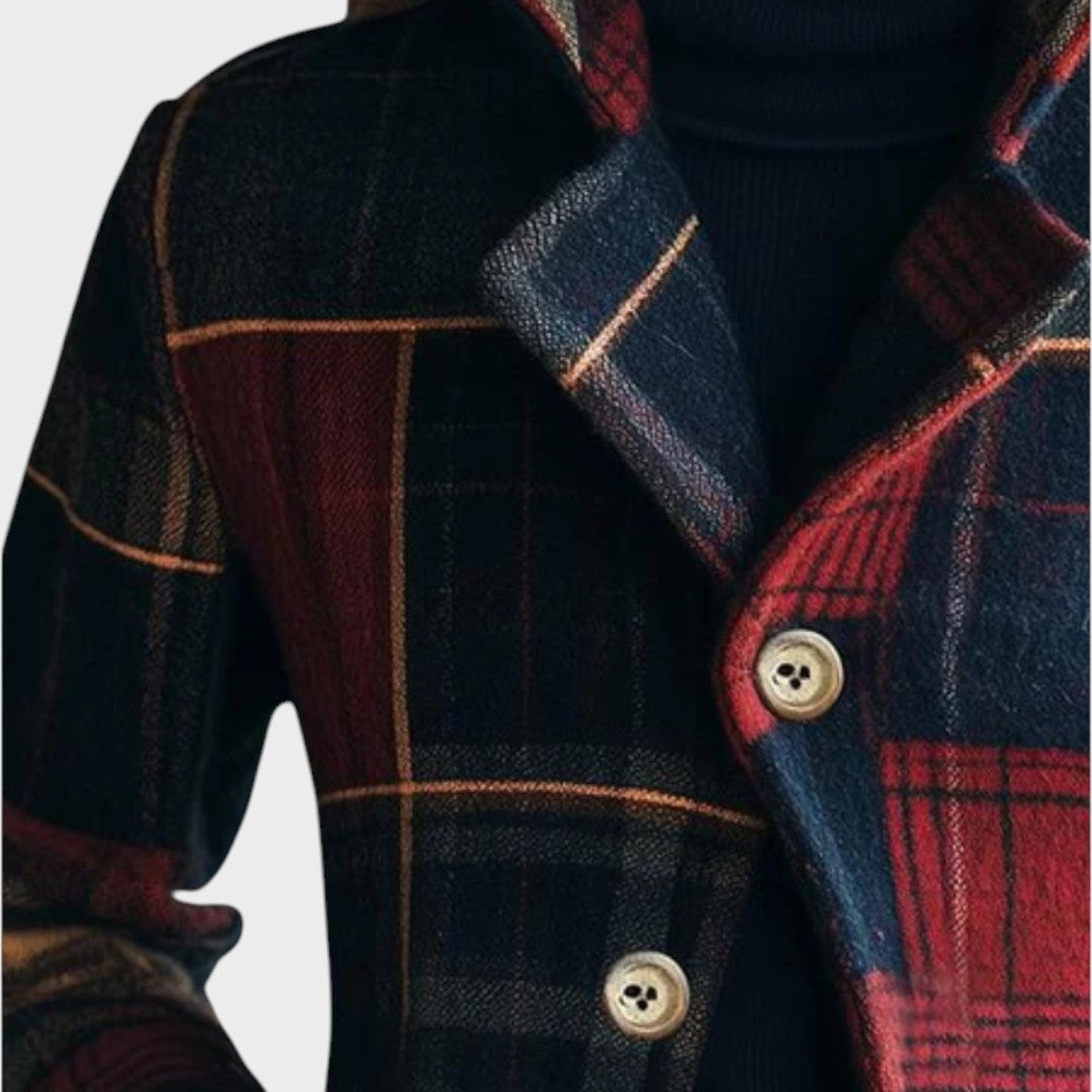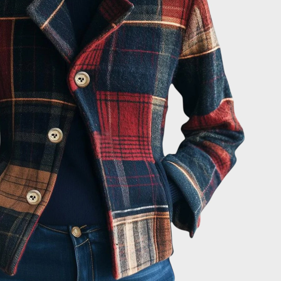 El Abrigo Naomi, que combina el clásico estampado de cuadros con un toque moderno y elegante, es la prenda perfecta para mujeres que aprecian el estilo refinado y la comodidad práctica. Su colorido estampado de cuadros le confiere un encanto atemporal, mientras que el cuello alto estructurado y el cierre de botones crean una silueta femenina y sofisticada.